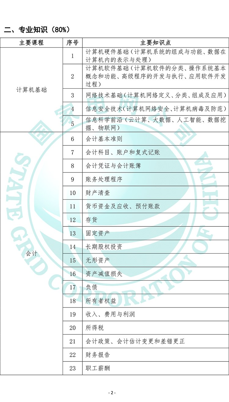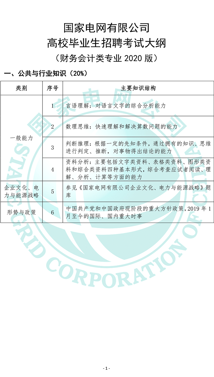 2020國家電網公司高校畢業生招聘考試大綱 (財務會計類專業2020版)